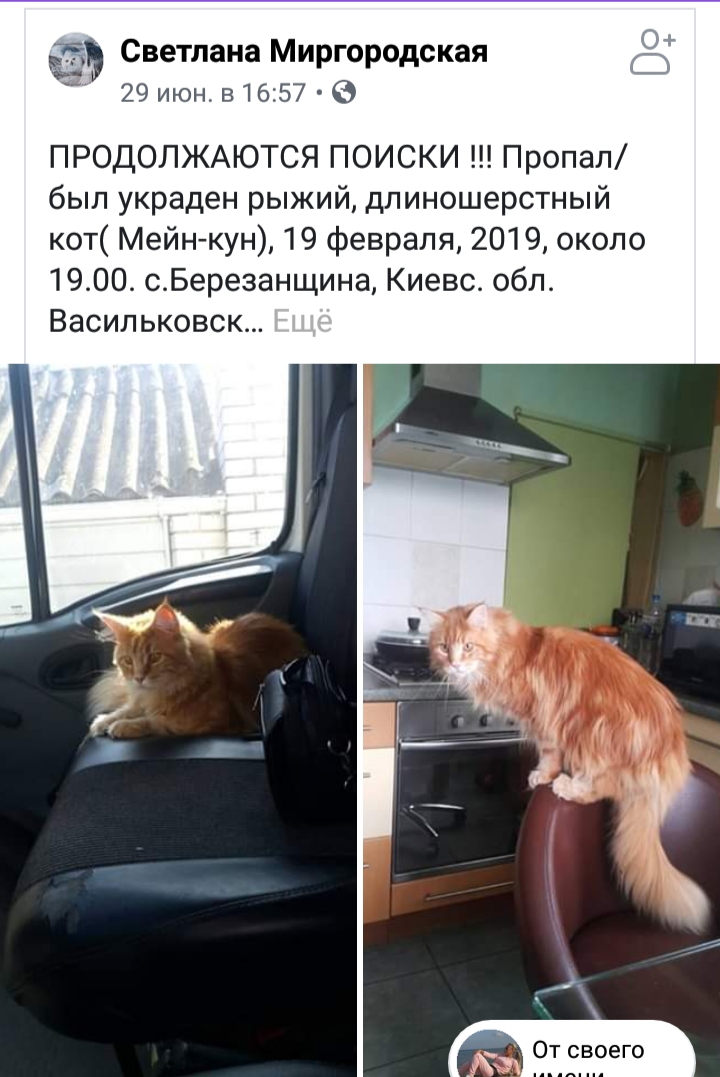 ПРОДОЛЖАЮТСЯ ПОИСКИ !!! Пропал/был украден - рыжий, длинношерстный кот (мейн-кун).